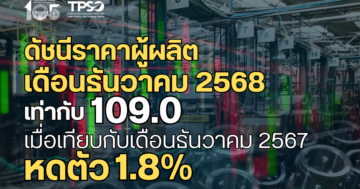 ดัชนีราคาผู้ผลิตของไทย เดือนธันวาคม 2568 หดตัวตามราคาพล […]