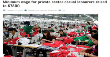 เมียนมาขึ้นค่าแรงขั้นต่ำ เพิ่ม 1000 จ๊าต รวมเป็น 7,800 […]