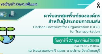 7 ขอเชิญเข้าร่วมงานสัมมนาเชิงปฏิบัติการ หลักสูตร “คาร์บอนฟุตพริ้นท์ขององค์กร สำหรับผู้ประกอบการขนส่ง” 13 กุมภาพันธ์ 202613 กุมภาพันธ์ 2026 งานสัมมนา